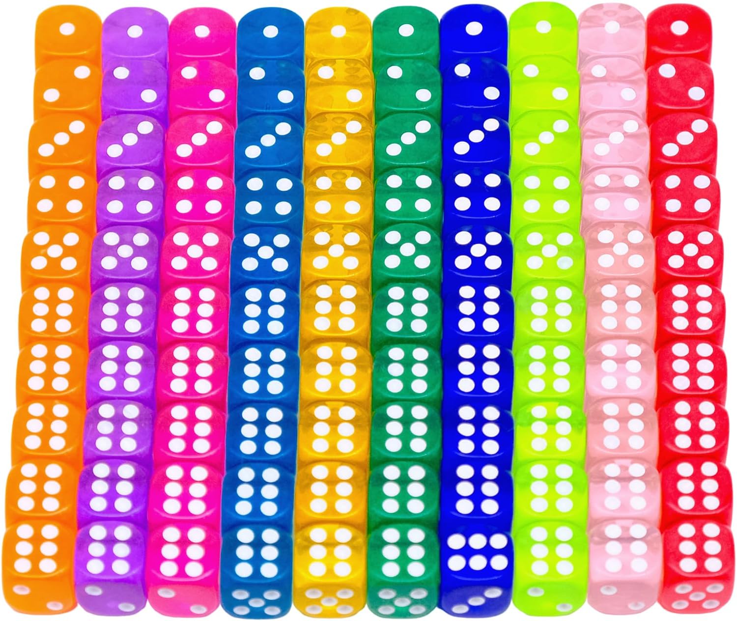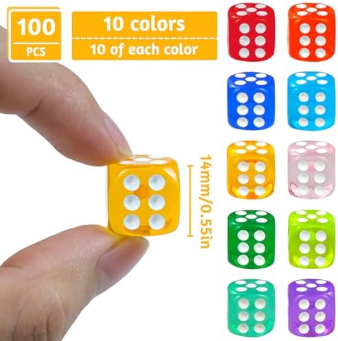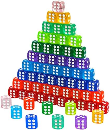 100 pièces Set de dés à 6 Faces, Cubes de Jeu en Acrylique 12mm, Cubes Multicolores à Coins Ronds, Jeu de dés Dice Set, Jeux de Table de dés, Set de dés à 6 Faces Multicolores,10 Couleurs