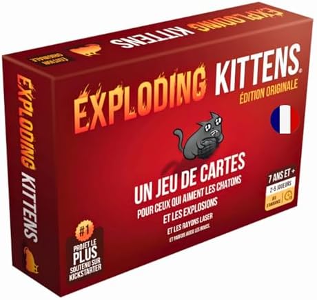 Asmodee Exploding Kittens Jeu de Base – Jeu de Cartes d’Ambiance Hilarant pour Adultes & Enfants dès 7 Ans – Evitez Les Châtons Explosifs – Jeux de Société 2 à 5 Joueurs – 15 Min – en Français