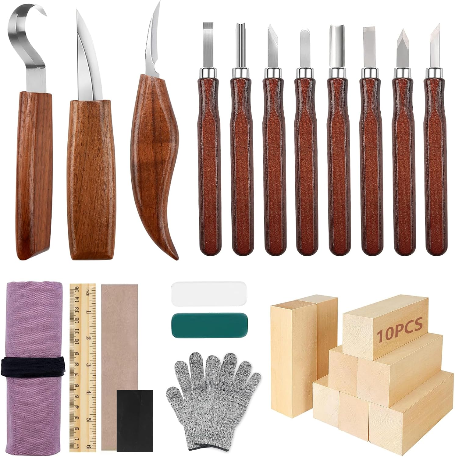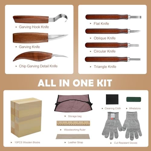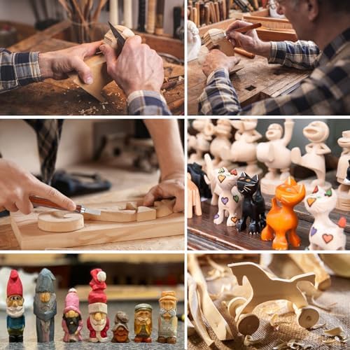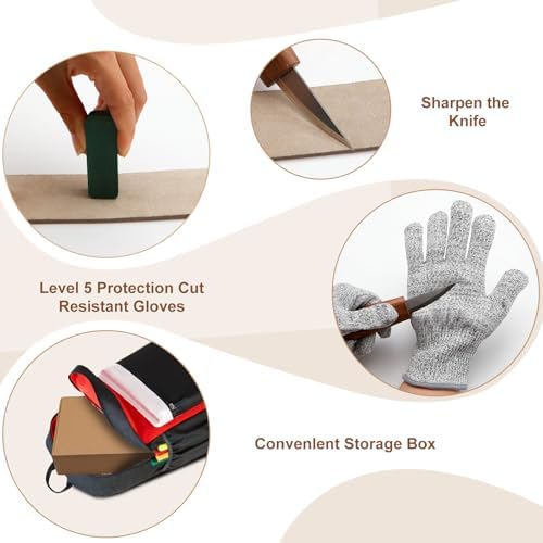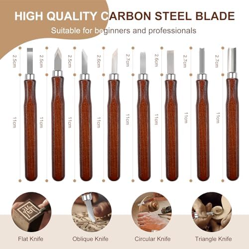 Chaque couteau est doté d’une lame en acier inoxydable, garantissant une durabilité et une résistance à la corrosion. Les poignées ergonomiques en bois offrent une prise en main agréable, permettant de travailler pendant des heures sans fatigue. L’ensemble comprend des couteaux de différentes tailles et formes, parfaits pour réaliser des détails fins ou des coupes plus larges.