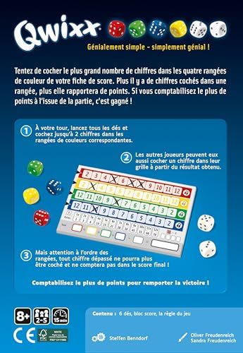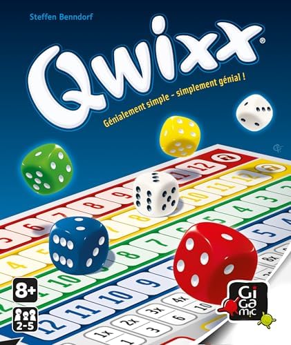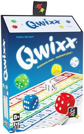 Découvrez le jeu de dés Qwixx de Gigamic, un divertissement captivant pour toute la famille, des enfants de 8 ans aux adultes de 99 ans. Ce jeu rapide et stratégique vous plonge dans une compétition palpitante où chaque lancer de dés compte. Avec des règles simples et accessibles, Qwixx est parfait pour les soirées entre amis ou les après-midis en famille.