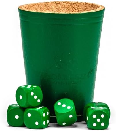 Gobelet à dés en Cuir Véritable (9 cm) avec 6 cubes en bois (16 mm) en bois de hêtre Tasses en Cuir Set de dés pour les yeux Cube de jeu (Couleur : Vert)
